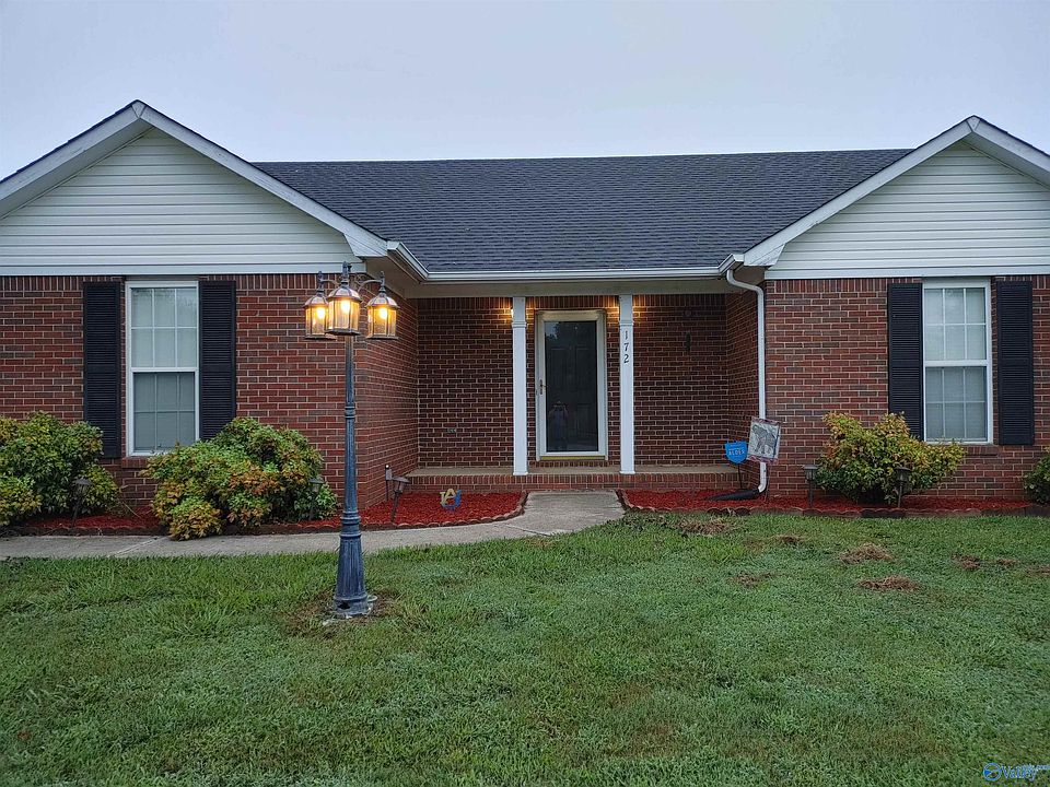 Cozy 3 bedroom, 2 bath home in great neighborhood close to all the amenities in Huntsville. Foyer opens to a huge living room with fireplace, trey ceiling and wood laminate flooring. Kitchen has dining area with bay window, and ceramic tile flooring. Master bedroom with private bath and separate his & hers closets. Garage has extra space for workbench. Oversized back yard and patio great for entertaining. Brown storage building in back yard will convey.
