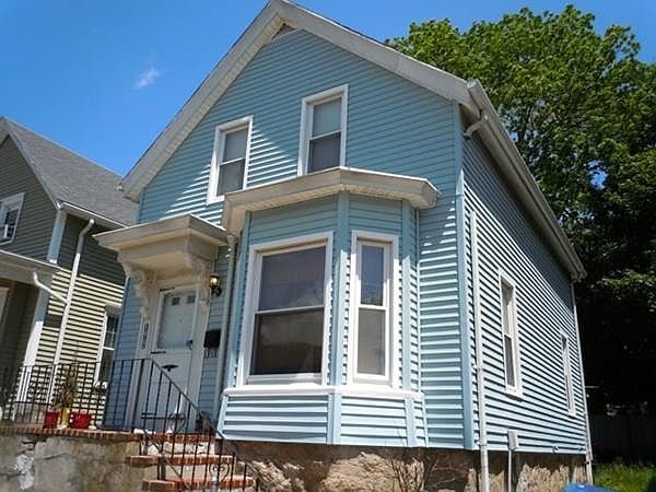Here is your chance to own an affordable home located very close to Downtown New Bedford and Buttonwood Park. The first floor living room has an airy feel with tall ceilings and a big bay window to bring in the natural light. The kitchen is a pantry style with lots of counter and cabinet space. The living space on the first floor is versatile. Perhaps you need a formal dining room or an eat in kitchen. You can have both in this charming home! The foyer has a lovely staircase that leads to three generous size bedrooms with hardwood flooring and ample closet space. There is a full bath on the second level and a half bath on the first level. Maintenance free exterior, replacement windows, full walkout basement to a fenced yard. This home needs updating but worth the effort.