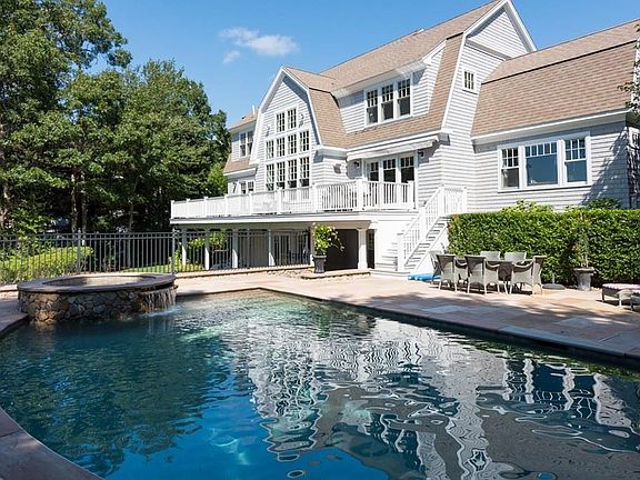 An entertainer's dream, this residence boasts exceptional finishes and luxurious amenities to create an idyllic waterfront retreat. Highlights include a private dock, spectacular pool with spa, and stunning home theater. Soaring ceilings and a wall of oversized windows flood the living room with natural light and showcase gorgeous water views immediately upon entering the home. The open floor plan seamlessly flows to a gourmet kitchen, large dining area, and comfortable den that can be used as a home office. A spacious primary bedroom suite is conveniently located on the main floor with a deep walk-in closet, luxurious bathroom, and views over Shoestring Bay. The second floor includes three well-appointed guest bedrooms, all with en suite bathrooms and walk-in closets. The finished lower-level of the home doubles the amount of living space and includes a secondary kitchen with easy access to the pool area, as well as a full bathroom, home theater, and bonus room.