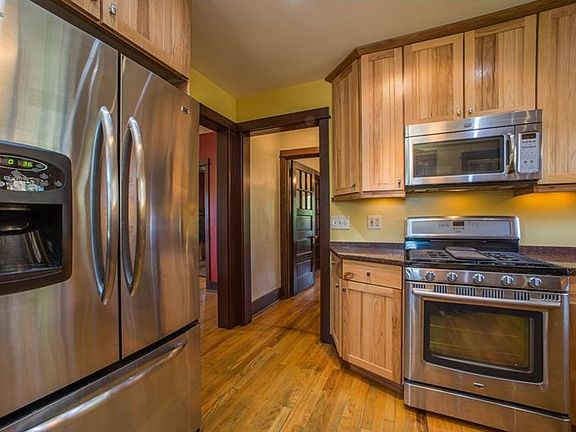 Irresistible 2-bedroom, 2-bath home, built in 1940's Craftsman style, filled with desirable updates that have all been made in keeping with the original design aesthetic! Refurbished wood trim and original five-panel doors throughout. Exposed hardwood floors. Inviting covered front porch. Living room with decorative fireplace and French doors to sunny den with ceiling fan. Pocket doors separate the living and dining rooms. Renovated kitchen has hickory cabinets, stainless appliances, quartz countertops, step-in pantry, and walks out to covered rear entry and yard. Two spacious bedrooms with walk-in closets and updated bath upstairs. Finished lower level has gameroom with all new carpeting, full bath, laundry, and storage. Oversized detached garage with workshop. Koi pond. Amazing 1.225 acre lot with new septic system. Home warranty.