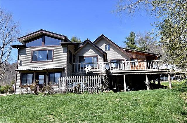 A beautiful pastoral setting with barn, creek & 5.5 acres of mostly pasture land. Partially covered wrap around deck on two sides to relax and enjoy the mountain views and gaze at the stars. 2 bedrooms, 2 baths plus loft thats not included in square footage. The large living room with gas logs in fireplace take in the mountain views with the many windows. Lower level has a large bedroom, large bath with garden tub and separate shower plus family room, half bath and lots of storage.