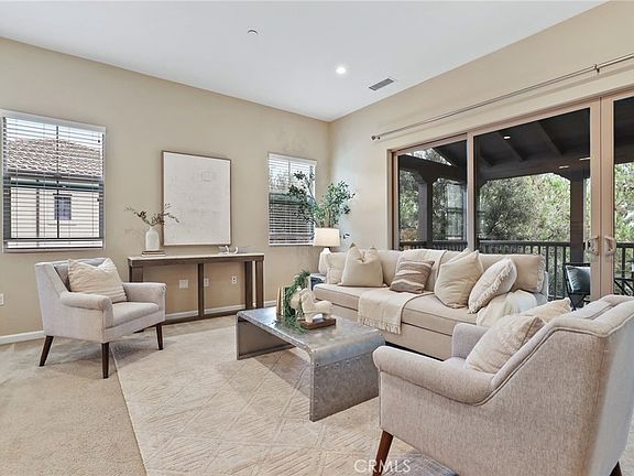 This stylish residence combines comfort, functionality, and natural light throughout. The entry welcomes you with a warm foyer leading upstairs to a bright open concept living area featuring a spacious great room, dining area, and modern kitchen. The gourmet kitchen showcases a large center island, quartz countertops, stainless steel appliances, custom backsplash, and pendant lighting, all flowing seamlessly into the living and dining spaces. A sliding glass door opens to an oversized covered balcony surrounded by greenery, perfect for morning coffee or evening relaxation. A versatile den provides the perfect space for a home office or quiet reading nook. The home offers two comfortable bedrooms and two full bathrooms. The primary suite features multiple windows, a walk-in closet, and a spa-inspired bathroom with dual vanities and a glass-enclosed shower. The guest bedroom is equally inviting, with easy access to a full hallway bath. Eastwood Community is one of Irvines most popular Villages. Walk to acclaimed Eastwood Elementary School located within the Village, easy access to Jeffrey Open Space Trail, and Resort Style amenities for swim, play and picnic. Fantastic Walkability: Enjoy shopping and Dining at nearby Cypress Village Center, Woodbury Town Center, Orchard Hills, or Irvine Spectrum, all just minutes away. Easy access to freeway.