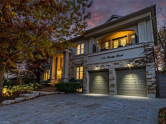 Welcome to 172 Boxley Road — a masterfully crafted European-inspired residence poised on the cusp of Oakville and Burlington, just steps from the Lake. Designed for those who appreciate architectural excellence and refined living, this exceptional home embodies timeless elegance, thoughtful craftsmanship, and modern sophistication — all within one of the area’s most sought-after school districts. From the grand stone and stucco façade to the custom solid oak entryway and landscaped grounds, every detail reflects a commitment to quality and design. Inside, soaring ceilings, intricate plaster crown mouldings, wide-plank oak floors, and luminous tray and coffered ceilings create an atmosphere of graceful grandeur. The chef’s kitchen anchors the home — an entertainer’s dream with custom cabinetry, expansive quartz surfaces, a statement island, and an airy atrium-style breakfast space that floods the main floor with natural light. The adjoining family room offers an inviting retreat, enhanced by an elegant fireplace and seamless flow to the outdoor living area. Step outside to your private resort-inspired oasis — where a sparkling pool, integrated spa, custom gazebo, outdoor kitchen, and ambient lighting create the perfect setting for relaxation or entertaining. Upstairs, each bedroom is a private sanctuary, complete with its own ensuite and balcony access. The primary suite is a true haven — featuring dual terraces, a two-sided fireplace, a spa-like ensuite, and boutique-style dressing areas. The lower level extends the living experience with a temperature-controlled wine room, fitness and recreation zones, guest accommodations, and an advanced home entertainment system. Even the three-car garage has been finished to perfection, combining practicality with polished style. Elegant, inspired, and ideally situated in South Burlington, 172 Boxley Road defines elevated living where luxury meets lakeside serenity.