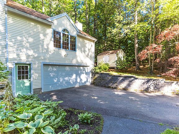 Enter down a tree-lined driveway and arrive at this well cared-for colonial home nestled in a secluded setting. Plenty of windows and sliders provide a bright home with the quiet of wooded privacy.. The first floor features a generous foyer, front-to-back living room, a formal dining room, and a spacious kitchen with slider to the deck. A great room with fireplace and vaulted ceiling complete the first floor. The second floor offers three bedrooms, the primary with walk-in closet and en-suite bath, and a second bath with laundry. If that's not enough, the walk-up attic and unfinished basement provide storage and room for expansion. Hardwood floor and crown moulding throughout. On-demand generator, large deck overlooking the back yard and a garden shed are some of the additional amenities.