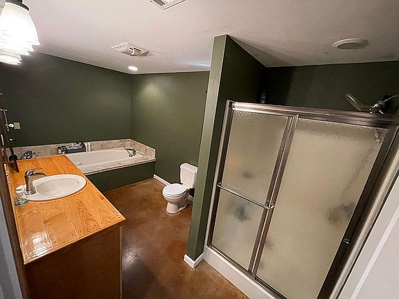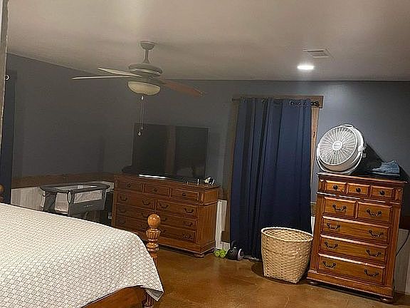 Ranch style home, concrete floors, vaulted ceilings, great room, open floor plan, handmade hickory cabinets throughout house, hickory plank countertops, rustic tin and antique barn wood throughout living room and dining room.