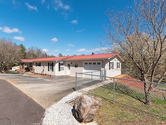 ACCEPTING BACKUPS! Welcome to comfortable 55+ living in the WNC mountains! This charming home is located in a lovely subdivision just 2 miles from the center of Franklin. Enjoy single-level living with a well-designed 3/2 floorplan & 24x22 oversized 1-car attached garage. You own your .56+/- acre lot, which is situated to take in a sweet mountain view. Easy paved access right to your front door. Inside, you'll appreciate the updated flooring in the living/dining/bedrooms & fresh paint in neutral pretty colors. A large open living room boasts gas FP & pretty "Hawthorne Oak" lam. floors. Kitchen appliances were updated & you're sure to love the cozy eat-in-nook in addition to formal dining space. The large primary suite features an immense en-suite bath w/huge vanity space & step-in shower. The split bedroom plan has your 2 guest bedrooms on other side, sharing a full bath w/tub-shower combo. Sip your coffee on the covered front porch & overlook the mountains, yet have the comfort of nearby neighbors. Fido will appreciate his dog run. There's tons of workshop/storage space in the garage. This cheerful home will charm you, and the metal roof & updated HVAC will give you peace of mind.