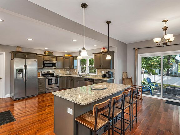 Looking for an antique home that's move-in-ready? Step back in time with modern comfort in this beautifully preserved 1890 Victorian-era home just moments from downtown Wolfeboro. With 3 bedrooms and 2 bathrooms, this home was thoughtfully and thoroughly renovated in 2016, blending historic character with updated conveniences. Inside, you'll find a bright and inviting open-concept living space perfect for gathering. Step out the sliding glass doors onto a large stone patio where you can relax around the fire-pit while enjoying a peaceful setting that includes a seasonal view of Crescent Lake. The modernized kitchen and baths complement the home's antique charm, while the spacious bedrooms and loft area offer comfortable accommodation for family and guests. The third level has been expanded and converted from an attic to a game-room with large windows, uniquely featuring part of the original chimney. Enjoy easy access to Wolfeboro's shops, dining, cultural attractions, lakeside recreation, ski slopes and more. Whether you're looking for a year-round residence or a vacation rental investment opportunity, this historic home has all the potential!