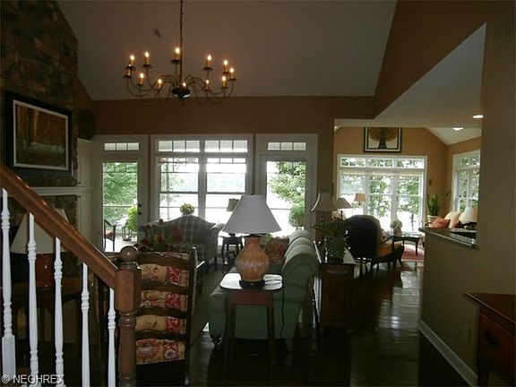 Lakefront Dream Home! Beauty throughout! Living room with cathedral ceiling, floor to ceiling stone gas fireplace with built in cabinets on both sides, hardwood floors and a wall of windows to enjoy the fantastic lake view. Spacious kitchen with beautiful counter tops, custom cabinets, hardwood floors, stainless steel appliances, and a 11 X 12 open sun room. Formal dining room is perfect for entertaining guests. No waiting to get ready in the mornings with three and a half bathrooms. Enjoy the lake view as soon as you wake in the morning with a wall of windows with a door leading to the upper deck. Master bathroom with walk in closet has dual sinks, walk in shower and bath tub. Upstairs has an additional two bedrooms and a bonus room above the garage that can be anything that you want it to be. The family room in the walk out lower level overlooks the lake and includes a second kitchen area, stone fireplace and walks out to a stamped patio. Another bedroom and full bath make this area a perfect guest suite or just an exceptional entertaining area. With easy care landscaping and two car attached garage, this house has it all. The basement walls were waterproofed with a lifetime warranty, The windows and doors are jeld-wen and also have a lifetime warranty.