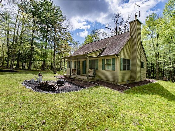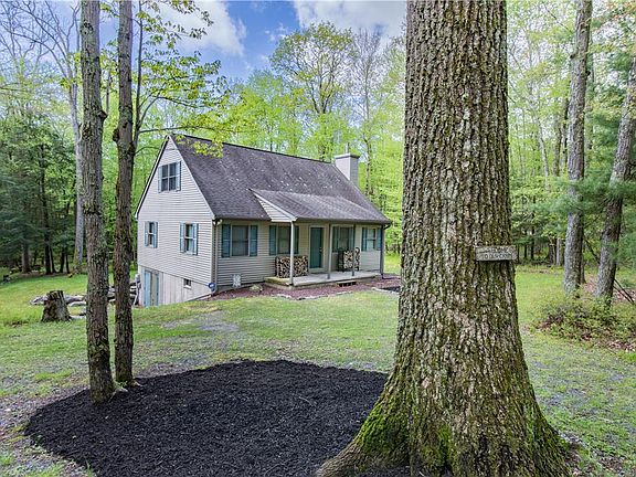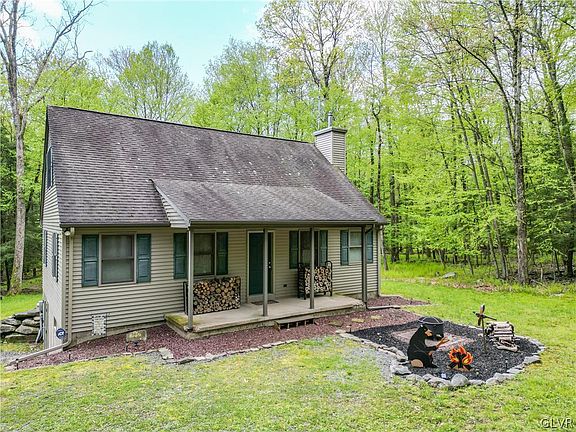 *ESCAPE the Hustle & Bustle, and feel like you are always on Vacation in this BEAUTIFULLY UPDATED 3 Bed/1 Bath Lovely Home with Cabin-Style Architecture and HUGE loft, OR use as your Part-time Cabin or Vacation/Getaway! Nestled on 2.37 Acres of wooded land in a private, quiet community, you'll enjoy the BEAUTY of NATURE right in your backyard~ gardening, wildlife, family cookouts, sitting around the large firepit & more! FANTASTIC LOCATION, close to many fun-filled amenities in the Poconos~ just a few miles south of Lake Wallenpaupack and minutes from Promise Land State Park. Step inside and be IMPRESSED with the GLEAMING HARDWOOD FLOORS throughout and TONS of NATURAL LIGHT flowing through the GREAT ROOM w/Vaulted Ceiling & Wood-burning Stove, graced with floor-to-ceiling stone. Entertaining or Family Game Night will be a breeze with the Great Room open to the Kitchen & Dining areas. Off the Kitchen, the 3-panel sliding glass doors invite the natural light & beautiful views of the woods. Down the hall, you'll find a thoughtfully-designed Full Bathroom and 2 ample-sized Bedrooms. The HUGE LOFT area provides plenty of space for the 3rd Bedroom, as well as an office or den area. The FULL, Walkout Basement has a workbench for your tools, more than enough space for your toys, and more room for future additional living space. This Picturesque Family Home/Cabin exudes Warmth & Coziness, and is an IDEAL RETREAT for those seeking a blend of Comfort, Nature, and Making Memories.