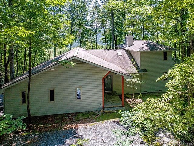 Magical top of the mountain 3.77-acre tract with a contemporary home, views, and a unique short drive to town! There is plenty of wooded property in Transylvania County but very few tracts with this elevation, gentle topography, NO HOA, and potential for massive views. The current owner loves the sustainable aspects of the property such as geothermal, passive solar, and soundness of structure. This home is for the buyer that wants that special piece of property with a great floor plan who can see past some unique finishes. See virtual tour.