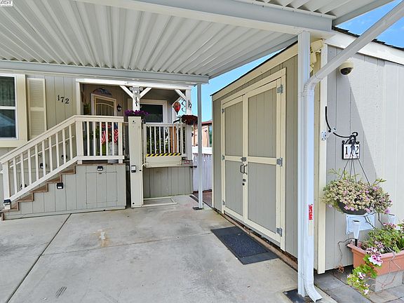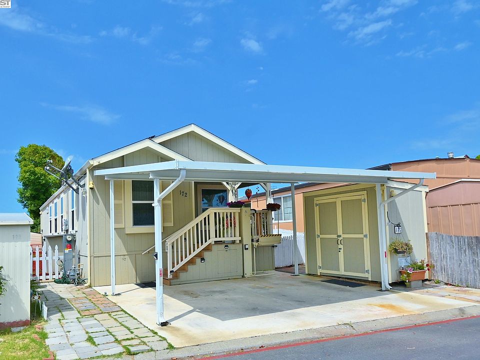 Opportunity awaits for this like-new manufactured home, featuring 4 bedrooms, and 2 full baths! Located in the highly sought after Southlake, a family community! Built in 2013, this home features a open kitchen, complete w/new slab quartz countertops, mosaic tile backsplash, gas stove, stainless appliances; Large utility room w/ walk in pantry and washer + Dryer; All appliances Stay! Central Heat & A/C, dual pane windows, and engendered wood flooring throughout. This beauty is flooded w/natural light. it even has a couple solar tubes! The primary bedroom features vaulted ceilings and en-suite bath w/ walk-in shower. Handicap access too! Keep those utilities cost down, this home has solar panels! Fenced in backyard w/ gazebo, two sheds and covered side by side parking. Community amenities include 2 Pools, Spa, and plenty more. Space rent to new owners $1,784.52/mo. This includes waster, sewer and trash.