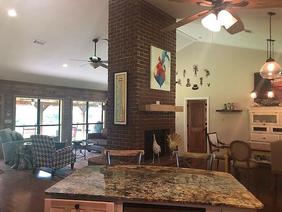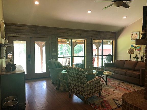 Satterwhite log home on 5+ acres near I-49. Best of country life near the city. This 7 year old home has low maintenance logs, Bamboo wood floors, spray foam insulation, double paned windows, and views of your massive yard. Wrap porch completely surrounds house with stenciled concrete. Open plan with living, kitchen and dining featuring wood burning fireplace (with gas logs) in center. Kitchen has island, granite counters, high end stainless gas stove with pot filler, coffee bar with sink. Huge utility room/pantry/office off kitchen. Large master bedroom has soaker tub and separate tiled shower plus walk-in closet - watch TV from the tub. Reclaimed wood on bedroom walls. Carport has lots of floored storage above. Large storage building with electricity, insulation and windows has double doors and overhead door to deck. Propane tank for stove and central heat. Security system. Separate mother-in-law suite with full bathroom with separate HVAC. Call for appointment.