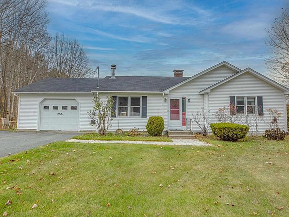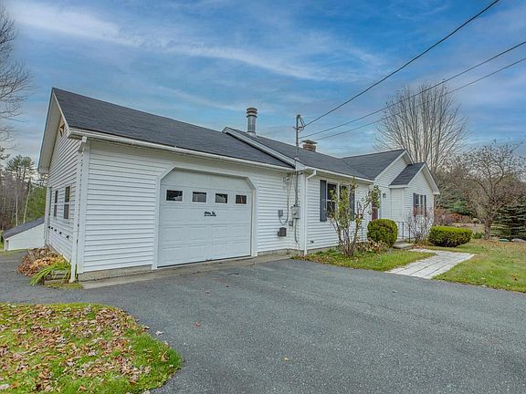This ranch sits on a beautifully landscaped corner lot, just over a half acre, with an attached one car garage, and an additional detached two car garage. Enjoy single floor living with the option for expansion! You enter the home through the attached oversized garage. The kitchen connects to the open living room complete with pine floors and a fireplace. This floor also has a primary bedroom with a bathroom, and an additional bathroom and bedroom, along with washer and dryer hookups. Downstairs is open and has doors to walkout to the backyard, as well as a wood stove. Perfect for additional square footage or storage space. This home also has an additional separate curb cut to the detached garage. This home is just a short walk to everything Downtown has to offer, and just minutes from I93.