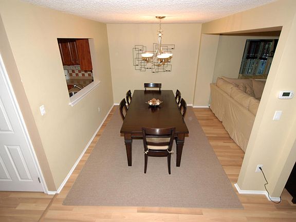 Beautiful well maintained townhome in the desirable Raintree Community. Updated kitchen features granite countertops. Large dining room with open concept that opens into the living room. Sleek laminate floors throughout first floor and walk out doors from the living room to the patio where you can relax in a semi-private backyard setting. French doors open to a den/study off the living room which also features double walk out doors to the yard. On the second floor there are 2 bedrooms and 2 full bathrooms. The master bedroom features a large WIC and updated master bathroom. There is a pull down attic in the second bedroom. Second full bathroom is updated and features a Jacuzzi bathtub. 1 year Home Warranty included to buyer at closing. This is a MUST SEE! WILL NOT LAST!