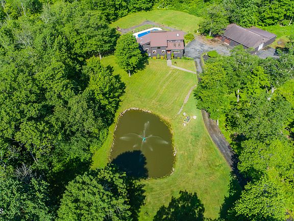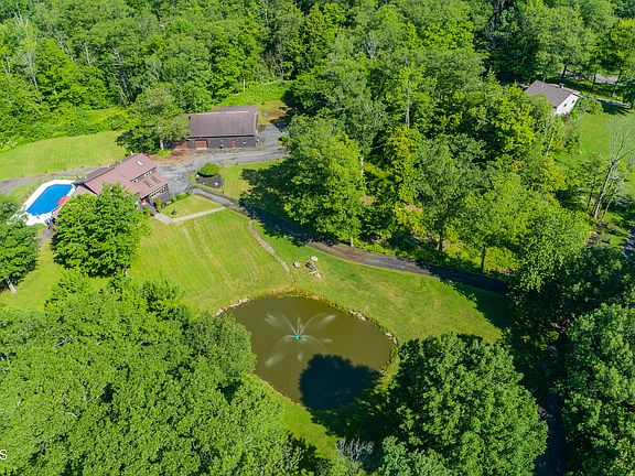 Rare Opportunity! This property has it all! Immaculate custom build with Privacy, Acreage, Pool, Pond with Fountain. Approximately 2700 square feet all updated within the past few years. 3 bedrooms and 3 full baths in main floors of home in addition to finished full basement with living area, bedroom and half bath. Main floor layout is unique and highly desirable. Living room with soaring ceilings featuring sky lights and fireplace. Gleaming Luxury Laminate floors throughout. Upstairs features large landing area with 2 bedrooms and 2 full baths. The 5+ Acres features pond with fountain, exterior lighting, completely updated pool (2018), deck and firepit. As a MASSIVE bonus- there is a 4000 square foot outbuilding that can serve many purposes. OUTBUILDING IS SOLD AS IS. Must See!