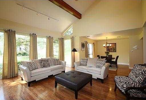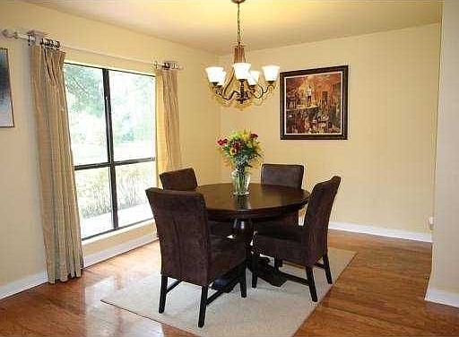 Wow! What a beauty! Kitchen opens to den, with granite island, freshly painted interior. Large living room has cathedral ceilings, wood burning fireplace, gleaming wood floors, French doors throughout overlooking the Park, pool, and lush landscaped front yard. 4th bedroom or office on 1st floor, storage galore. A must see! Huge master bath--marble countertops, Jacuzzi, separate shower.
