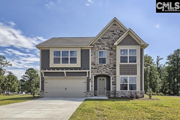 The Porter elevation F on lot #90 - featuring a welcoming foyer leading into an open floor plan. Office, formal dining room, Great room w/fireplace, and a kitchen that features granite counter tops, gray cabinets, stainless steel appliance package, walk in pantry and a large island. gas log fireplace in great room, and powder room. All LVT floors on main level. The 2nd fl. owners suite features his and her walk in closets, private bath w/sep. vanities, sep. shower, garden tub and sep. water closet. Laundry room with lots of storage space, and three additional bedrooms all with walk in closets and shared hall bath. Honeywell smart automation system, built in speakers, sodded yards with sprinklers, garage door opener are all standard. You will really appreciate your energy bills with this efficient home. - Easy access to I-20 only a short distance from downtown Columbia and zoned for Lexington High School. To get to community take Barr Road turn onto Wildlife Road, take a left on Zenker, Brookstone will be on the right less than a mile down on Zenker. This home is under construction and photos are stock, colors and options may vary. Please call agent for construction updates.
