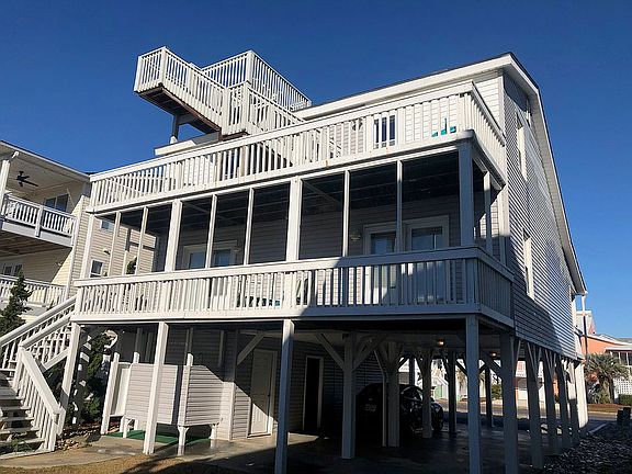 Spacious 3rd row home with great ocean views and beach access at both ends of block. Completely remodeled in 2014. Four bedrooms each with private door to outside decks, huge vaulted great room on main floor, large kitchen area with granite counters, upstairs loft area for additional beds or gaming area. New air/heat/water heater. Roof deck offers incredible ocean views. Two minutes till your toes hit the sand. Ample enclosed storage underneath, outside shower, loads of parking.