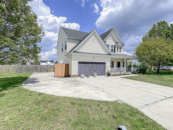 Beautiful 2 story on over a half acre lot . This boast of Large kitchen with gorgeous cabinets with upgraded auto close feature, granite counter tops, tile floors. Breakfast bar and nook, dining room attached playroom, office or dining area. .Great room offers fireplace. Master suite boasts cathedral ceilings, dual vanities & jetted tub. Secondary bedrooms are large. This is a great floor plan! Huge patio for outdoor entertaining, all fenced in to enjoy the outdoors. A front porch to enjoy the scenery. Great location to the military bases, Chesapeake Va and The Outer Banks beaches.