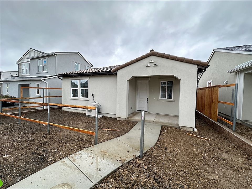 Plan 5 Single Story detached Spanish style home, comes with a spacious living room that is open to the kitchen, Full bathroom, Laundry, AC/Heat System, Quartz countertops, viny floors and carpet. Exterior features a single car attached garage, an additional 1 car parking pad, fenced side yard and a covered porch. Avila Ranch highlights the outdoor experience right out of your new front door. There are nine different parks, from small ‘pocket’ parks to the impressive SportsPlex. Park amenities include, play structures, exercise equipment, and fields and courts for various sports. Dec 2023 move in date.