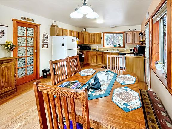 WATERFRONT cabin located at the heart of the Bear Creek Subdivision, surrounded by the Rio Grande Nat'l Forest and home to the areas most pristine waterways, the Conejos River. This cabin home has an open layout for entertaining friends and family. With floor to ceiling window views of the trout-stocked pond! Slip out the back door and have a relaxing soak in the hot tub. Walking distance to the river, where you are able to fly fish or enjoy the relaxing sound of the river flowing. Summer or Winter, there are plenty of fun outdoor activities to be had for the family to take advantage of. And with fiber optics installed...wow what a office view that is!! There is plenty of storage space in the home and also in the over-sized 4 car garage. In the garage area, there is also a space that could be used for a workshop or more storage. Whether you are looking for a relaxing getaway home or a warm and comfortable full-time home, this is it!!