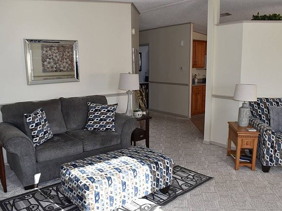 Beautifully Furnished Home on Golf Course..........Homes in the Swiss Golf & Tennis 55+ community are on lot leased land. You will own the home, but not the land. Paying a monthly lot rent of $556 gives you and your guest access to a great community with enjoyable amenities........ Enjoy tranquil or active living in this exceptionally appointed 1989, 2-bedroom, 2 bath home. A cheerful home with more than 1100 square feet of living space on the golf course at the 17th hole........ This stunning home is conveniently located and perfectly placed within a short walk to the clubhouse, pool, restaurant, tennis courts, pro shop and Lake Henry........ Look out your enclosed Florida Room to see the illumination of a small pond, complete with Sandhill Cranes, and a golf course right in your back yard!....... The home has a rubber roof with a warranty transfer, all appliances included and three skylights. The open floor plan works well for visitors and guests if you like to entertain. This home comes fully furnished, ready to go and treat a new owner to Florida living at its finest........ An added bonus is the enclosed Florida room with climate control-just roll your golf clubs out the door and you're on the course........ The well-lit eat-in kitchen has an adorable breakfast bar for sipping coffee and reading the paper. The roomy carport has golf cart access and room for two cars on a painted decorative driveway. The large shed has shelves for all the extras and houses the washer and dryer for those laundry days. Entertain with space in the formal dining area that includes a built-in china cabinet......... The living room is beautifully decorated with brand new furniture! ....... Guests can stay over in the large spare bedroom with a large closet. The spare room is currently decorated as a den/office area that includes a sofa-bed, ....... This home has lots of closets that makes it great for extra storage. End the day in your ensuite bathroom off your primary bedroom with a king bed and large closet........ This home has been well cared for and is completely furnished. All the amenities of an active lifestyle and use of the beautiful clubhouse, swimming pool, hot-tub spa, game room, work-out room, restaurant and pro shop come along with living in this beautiful community........ This home is a true gem and won't be on the market for long. Start enjoying all the advantages and amenities that the Swiss Golf and Tennis community has to offer. Fast closing with park approval!