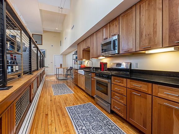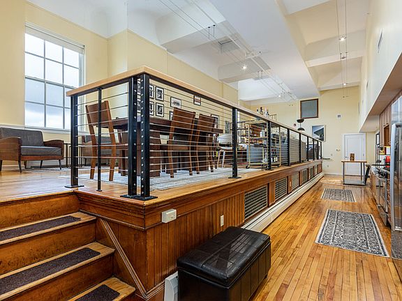 Welcome home to the most unique condo in the former Nathan Clifford school. The ''stage'' unit is 1280 sq ft of open floor plan on the former school's auditorium stage in addition to one petite bedroom/office. Enter into this light-filled condo with soaring ceilings, large energy efficient windows, hardwood floors, central air, in unit washer/dryer, and 1.5 bathrooms. The open concept creates a tremendous sense of space with amazing design possibilities. Create a primary bedroom space with the use of rice screens or silk hangings. The options for this space are endless. The kitchen boasts a long wall of cherry cabinets and stainless appliances. The high ceilings scream to be covered in artwork. Designed by famed architect John Calvin Stevens and his partner John Howard Stevens, the 1907 Nathan Clifford building in the Oakdale neighborhood of Portland offers the unique opportunity to live in one of Portland's thoughtfully renovated historical buildings. The 44,000 square foot former elementary school houses 22 pet-friendly units, a large fully equipped fitness room, communal meeting space/library/lounge and two first story guest suites for use by residents. Honored with the National Register of Historic Places, the Classic Revival Structure is spacious and inviting with its wide hallways, meandering stairways, high ceilings, elevators, storage and on-site parking. An outdoor patio, surrounded by perennial plantings, gas grill, furniture and a fountain salvaged from the original building make it ideal for social gatherings. Just minutes from the center of Portland, USM, fine restaurants, coffee shops and concerts at Thompson's Point. Seller is offering a credit for 50% of first year's HOA dues. OPEN HOUSE Sunday 9/17 11am-12pm