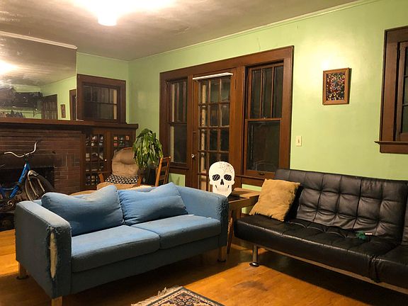 172 Fellows Avenue Apartment Two, 3 bedroom apartment, $385/month/room not including utilities. One to two rooms available for May 1, 2020, and August 1, 2020 to July 31, 2021. One to three rooms available for summer sublet May 15, 2020 to July 31, 2021 for a summer sublet. LGBTQ friendly, polite, sweet, clean ESF and Syracuse University students seek roommate Gorgeous old Arts and Crafts Stickley style house with beautiful natural wooded French doors that lead from the large living room to the dining room. The living room has a decorative non-functional fireplace surrounded by built in bookshelves and a large wooden mantle. The woodworking in this house is to be admired. The kitchen is cozy with lots of wall arches and built in cabinets and a cute little hidden spice rack on the wall. There's a walk in pantry off the kitchen with lots of storage and a working countertop for food prep. There is a private front porch overlooking a large mowed park with a wooded hillside in the background. Two of the three bedrooms have a closet and all three rooms have two windows, and there are lots of windows throughout the house. The very last bedroom in the back has an extra bonus room, an enclosed sun porch used for storage and craft space. The bedroom with extra storage is an additional $15/month. There's off street parking and a small shady wooded area in the backyard. The front yard has a mini urban forest with a mix of perennials. This house is 2 1/2 blocks from the heart of vibrant Westcott Street, Recess Coffee, Alto Cinco and Beer Bellies, Syracuse University bus stop loop, and it is walking distance to campus. Off street parking, free basement laundry, energy star appliances, private sunny front porch. No smoking, no perfume, no air fresheners, no candles, no dryer sheets, Unscented laundry Short or long lease, rent by the room $385 or whole apartment. Eco green Westcott rooms and apartments. Summer or whole school year