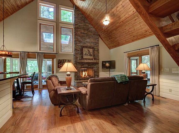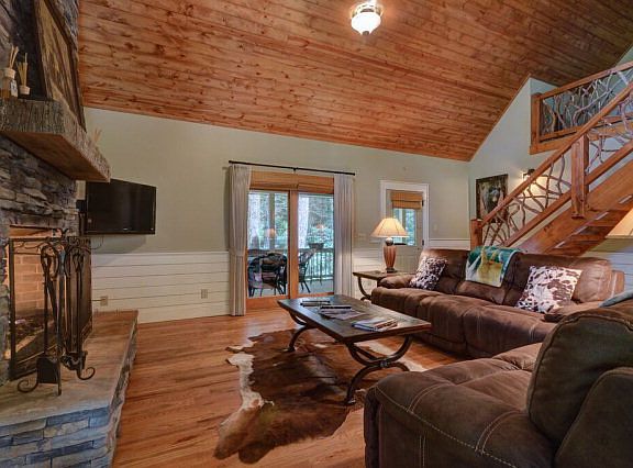 Conveniently located between Highlands and Cashiers, this home offers end of the road privacy in Wildwood Forest. This fully upgraded cottage is offered fully furnished and features an open living area with stone fireplace and two large screen porches connected by open grilling deck. Two bedrooms and two full baths on the main level and large bedroom suite and loft up. Energy efficient construction includes spray foam insulation and a fully encapsulated crawl space. Two car attached carport.