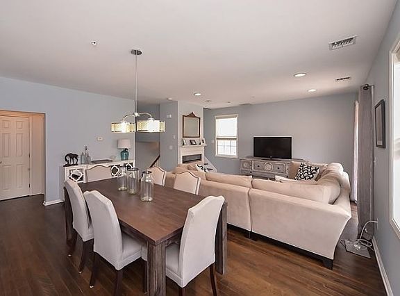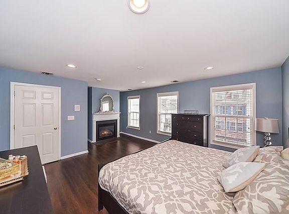 Sunny end unit south facing townhouse in desirable gated community of Cambridge Crossing. Rarely available Summit unit features newly refinished hardwood floors throughout, 2 gas fireplaces--in LR and Master Bedroom, 3-zone heating system, central A/C, SGD to terrace, plenty of closets and storage. The Eat-in kitchen w/Corian counters and SS appliances has an open flow into dining/living room. A full laundry room and powder room complete the main floor. Upstairs features a master bedroom suite w/walk in closets, second bedroom and full bath. The third floor bonus is a bright, roomy loft for play, work or entertaining.