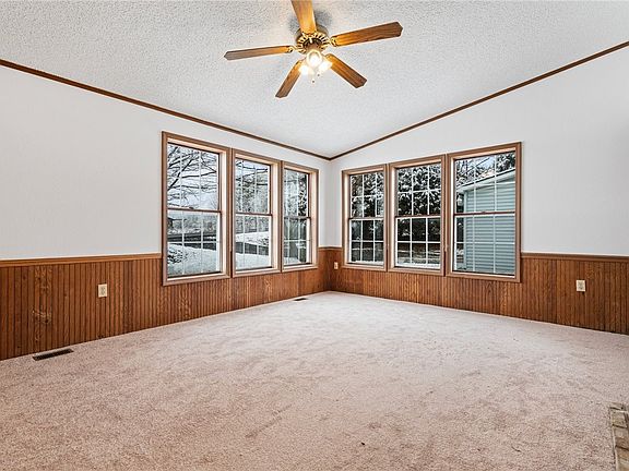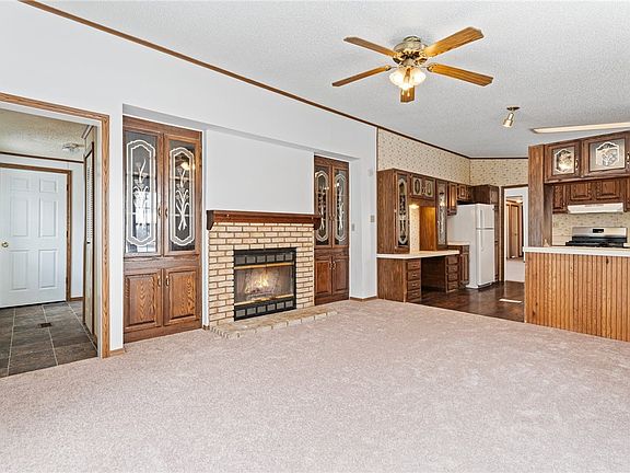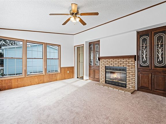 Escape to a tranquil countryside oasis with this charming three-bedroom, two-bathroom manufactured home. Freshly carpeted interiors exude modern comfort, offering a spacious living area complemented by a fireplace. The primary suite boasts convenience with its en-suite bathroom, while two additional bedrooms provide versatility. Outside, embrace the serene landscape, enjoying the detached two-car garage and ample space for relaxation or entertaining. Don't miss this chance to experience the perfect blend of country living and modern comforts in this inviting home! Upon acceptance of offer, buyer must apply to the park.