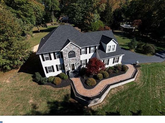 Welcome home to 172 Governor Markham Drive; nestled beautifully on a large acre lot perched on the rolling hills at the end of the peaceful family friendly community of Governor Markham Drive of Glen Mills in the top ranked Garnet Valley School District, with easy access to all commuting routes to major corporate centers, shopping, Philadelphia, Wilmington and even NY City. This lovely colonial home warmly greets you the moment you turn onto the lushly landscaped meandering drive with its extensive post lamps and beautiful custom EP Henry paver walkway leading up to its regal stone facade through the main entrance with leaded glass side lights into the grand two story center hall foyer with gleaming hardwood floors that flow through the main level. A warm and inviting open floor plan welcomes you into a stunning formal living room and formal dining room suite with custom chair rail and crown molding mill work, and a spectacular gourmet chefs kitchen with its exquisite large turned tile floors, granite counters, upgraded top of the line 42' cabinetry, center island, stainless appliances, pantry, tiled back splash, soft close custom drawers, extensive recessed lighting, and a magnificent breakfast room looking out over a beautiful custom EP Henry paver patio into the backyard. Relax in the lovely family room with its vaulted ceilings, cozy gas fireplace and backyard views. The main floor is completed with a first floor office/study, powder room, and a large mud room off the kitchen provides convenient access to the over-sized two car garage. A grand turned staircase leads to the upper level with its gorgeous master suite that shows off its vaulted ceilings, a luxurious en suite tiled bath, custom vanities, and grand over-sized walk in closet with custom organizers by Closets By Design, as well as a sitting area and the upper floor laundry is conveniently located adjacent to the master suite. The upper level is completed with three additional spacious bedrooms with spa