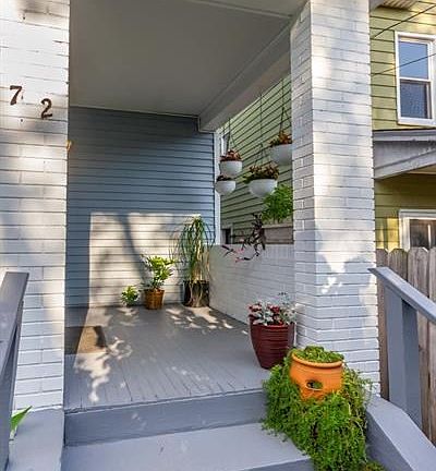 Lovingly maintained 3BR/1BA home. Updates completed without removing the charm. Enter through a sun-drenched enclosed patio space - perfefct for greenery. The generous living room still has that cozy feel, and is a great gathering space. Same with the dining room. Ample room to entertain - exposed brick fireplace (decorative) and open to the kitchen. Dining room has hardwood floors and high ceilings. Kitchen as plenty of work and storage space. Upstairs, 3 bedrooms with good closet space. Roof installed 8/2020! Terrific back patio off kitchen for chilling and grilling. The entire yard is a gardener's delight, and is fenced front to back. Plus a private parking pad!