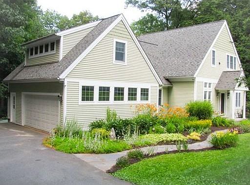 This lovely contemporary style home with attached 2 car garage is set on a beautifully landscaped lot in a quiet neighborhood. The entry welcomes with high ceilings that lend an airy feel. Off the main hall is a room perfect for a study or bedroom, a dining room for entertaining, and a living room with fireplace that opens to the deck overlooking the back yard. Stunning Ashfield stone counter tops, custom built maple cabinets, and stainless appliances, including a Viking range, complete a dream kitchen for the new homeowners. Upstairs are 3 bedrooms and a full bath with laundry, and a separate, private master suite. Efficient with 3 heat zones and central air on the 1st and 2nd floors. The walk out lower level has a built in media center in the comfortable family room, plenty of storage, and potential from an original darkroom to be a half bath. Impressive Goshen stone walkways, steps, and patio, garden beds in sun and shade, both lawn and wooded areas round out this exceptional home!