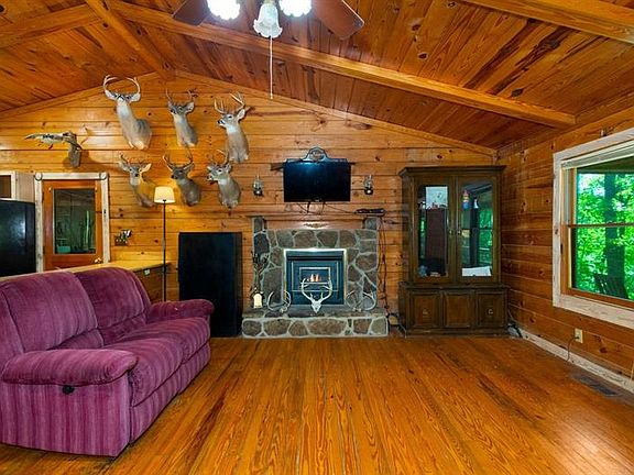 True log home over a full unfinished basement just awaiting your updates - the possibilities are endless! This homes sits on 3.38 wooded acres all overlooking a beautiful stocked lake just minutes from Lakepoint Sports Complex and downtown Cartersville. This property boasts a large front porch, covered back porch and open deck where you can enjoy the natural beauty of this area along with abundant wildlife. Don't miss out on this retreat that seems so far away yet sits minutes from I-75.