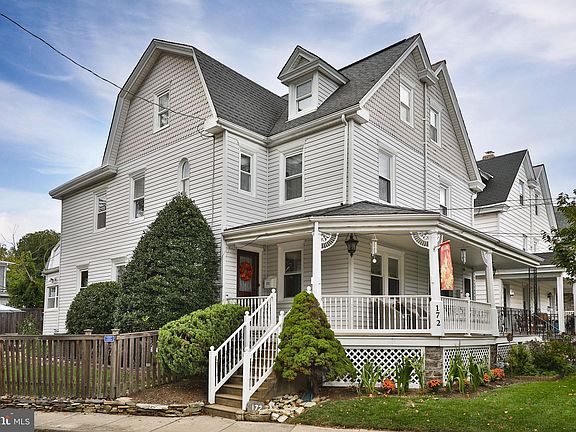 Built at the turn-of-the- century this charming Victorian twin has a perfect combination of original architectural detail and modern amenities and upgrade to give you the feel of old world charm with the convenience of today. This attractive move-in condition home is located in the heart of Glenside, within walking distance to everything that Glenside has to offer; including restaurants, pubs, shops, train station, bus line, Keswick Village, parks, library and township pool. A relaxing front porch leads you to the front door that opens into a lovely entry foyer with original unique window. The bright living room has a decorative mantle and windows on two walls, overlooking the front porch. The oversized formal dining, with pine floors and crown molding leads into a fantastic spacious eat in kitchen with handsome wood cabinets, including an original pantry cabinet, pine floors, wood wainscoting, all newer stainless steel appliances, and ample counter space. Off the kitchen you'll find a bright upgraded mudroom with storage and renovated powder room. A newer glass door leads to a beautiful fully fenced in back yard with a great brick/flagstone patio which is a great area for outdoor entertaining, meals, parties and play. The second floor features a primary bedroom, with access to a bonus room that can be used as a dressing room, office or nursery. There is a second large bedroom and upgraded hall bath. The third floor consists of two bright cheerful bedrooms, with large closets. The full basement is a great storage area with access to a separate laundry area. The three car garage is a unusual feature for a twin in this neighborhood, with remote access for center door. Replacement windows, 6 panel doors and pine floors through out the house.