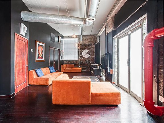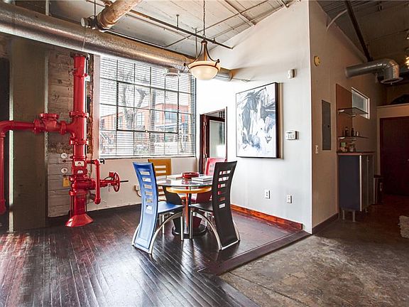 Must see this rustic gem in the heart of Castleberry Hills! Corner bottom unit with lots of windows and natural light. New paint throughout w/new light fixtures. Enjoy the 1920 natural brick walls. Open concept w/high ceilings w/views from living to dining. Contemporary kitchen w/granite counter tops. Bedrooms both have their own full bath. Enjoy the double door exit/entry to the front of the building. Walk to shopping, dining, and Marta. Amazing courtyard and roof top w/city views. Dog park area and in ground pool. 2 parking spaces in gated parking lot. Great Location!