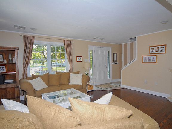 Carefree feel of living in this deceivingly spacious home! Charming & spacious front living room w/hrdwd flring, Sprawling kitchen w/ceramic tile flooring, corian countertops, sliding glass door off kitchen to new composite deck, 1st floor bedroom & bathroom, accomodating 1st floor laundry, new composite balcony off upstairs bedroom, newer windows throughout. Not another like it!