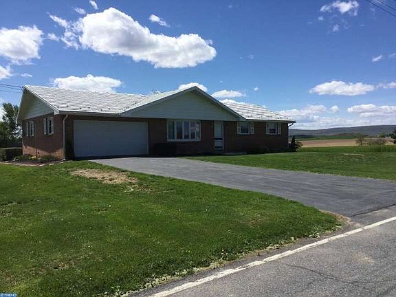 Here it is! The brick ranch home in a country setting with beautiful views of the Blue Mountains, yet close to Rt 61 to get you wherever you want to go. Hardwood floors in DR, LR and 3 bedrooms. Slate floor in kitchen. All replacement windows. 4-yr. old high efficiency furnace. 8-yr old 100-year aluminum roof. Lots of closets! Huge family room downstairs with wood beams, a dry bar and a wood-burning fireplace. The hall bath is original, and the half bath is in the garage. Enjoy the peace and quiet, and spectacular views of the Blue Mountains, on your rear paver patio. Quality construction with 2' x 6' exterior framing. New landscaping and mulch, too. Attractive shed for storing all your lawn equipment. Existing 2.86 acre lot is being subdivided by Seller, so closing can occur as soon as completed - approx. June 2016. Home will be sold on approx. 1.3 acres. Basement waterproofing just completed with transferable warranty. Seller will provide a one year Home Warranty for Buyer, too. Seller is family member of Listing Agent.
