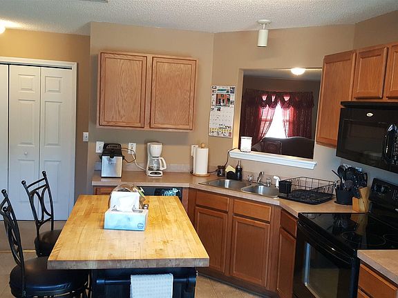 - Kitchen: Counter Tops-Formica, Eat In, Pantry, Island, Cabinets-Stained, Floors-Vinyl