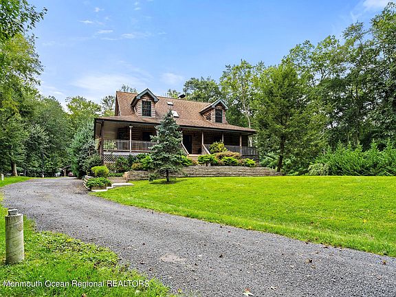 Nestled on a tranquil expanse of 9 pristine acres, this charming 3-bedroom, 2.5-bathroom log cabin home beckons with rustic allure and modern comforts. A winding gravel driveway, bordered by towering pine trees, leads you to this idyllic retreat. The master bedroom, located on the main floor, offers a peaceful haven with an ensuite bathroom and a walk-in closet. Upstairs, two additional bedrooms provide cozy accommodations for family or guests, with a shared full bathroom. A highlight of this property is the expansive deck, accessible from both the living area and master bedroom. Here, you can savor morning coffee or evening cocktails while overlooking the sprawling acreage. This home also features a finished basement which includes a wood burning fireplace.