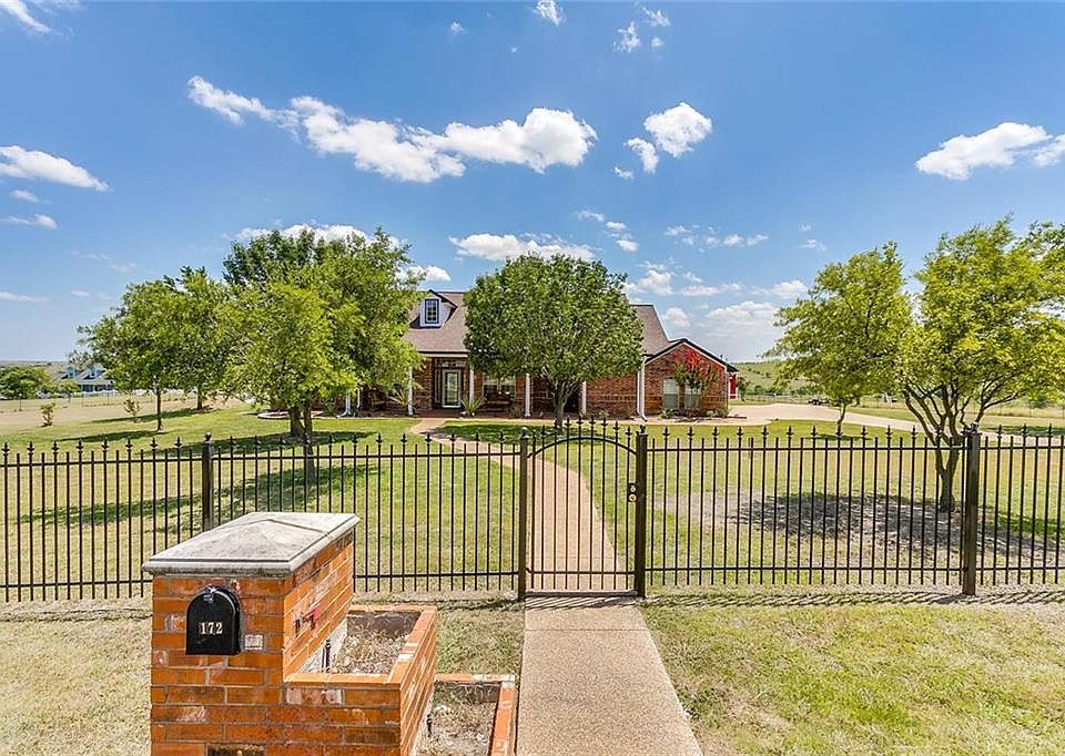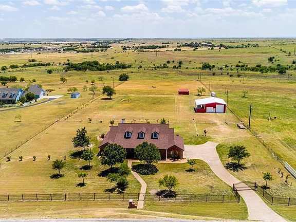 Beautiful home on 5 acres in Aledo ISD! Open floor plan welcomes you home as you step through the elegant front door. Great architectural features throughout with arched walkways, columns, crown molding, and lighted box and vaulted ceilings. Spectacular views through the walls of windows. Enjoy the sunrise and the sunset from the brick-paved covered porches. Gated iron entry. NEW Large workshop to hold all of your toys. Property is cross-fenced with room for the farm animals with loafing shed. Ag Exemption in place! Remarkable storm shelter. Easy access to the interstate. 25 minutes to Downtown Ft Worth! Get your piece of the countryside while it lasts.