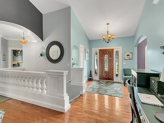 MOTIVATED SELLER! This quality built home is located on a wooded, landscaped corner lot, tarred circle drive. Located near Oak Hill Golf Course offers quick access to Hwy 10. The entry welcomes you in to a spacious foyer w/closet and views of the Great room which features soaring 14' vaulted ceilings & gas fireplace. Open floor plan w/hardwood floors. Kitchen w/walk-in pantry, granite countertops, & newer SS appliances. Formal dining has stunning tray ceilings & informal dining offers patio doors overlooking the heavily wooded back yard. The owner's suite w/walk in closet has bath w/ jetted tub & walk in shower. 3 same floor BR's. Lower level includes: oversized Family room, Library w/built in bookshelves & Bar, Exercise room, Office, Bedroom, Full Bath & Storage room. 16'6x25 composite deck & 15x20 stamped concrete patio gives you your own backyard retreat w/plum, pear & apple trees. The 3 stall insulated/finished garage has 13' sidewalls and up to 25' depth. Shingles new in 2020.