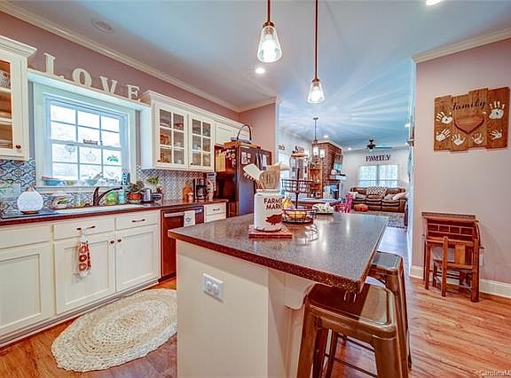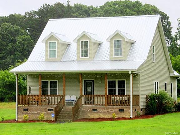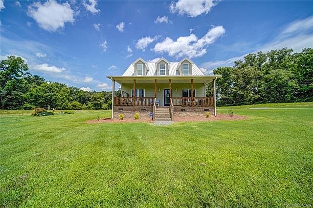 This home is sits in a private location in the country, Tax records says 17.66 acres, but a l.25 acre piece was deeded off leaving approx 16.41 acres. tax value is based on the 17.66 acres does not show the l.25 surveyed out. There may be a little less after it is redone. This home has 9 ft ceilings, corian cabinet tops on beautiful custom white cabinets. Special tile back splash, recessed lighting. Nice open area from kit to family room, large master bedroom with huge bath. There is an additional bedroom on main level, nice laundry room. Upstairs has 3 bedrooms, 1 large full bath, 2 great attic areas accessed from 2 bedrooms. Large horse barn on property plus 2 ponds. Propane tank is leased Yadkin propane approx $85.00 a year recently. located in City of Stanfield Cement pad in back was for a building, but they did not build.