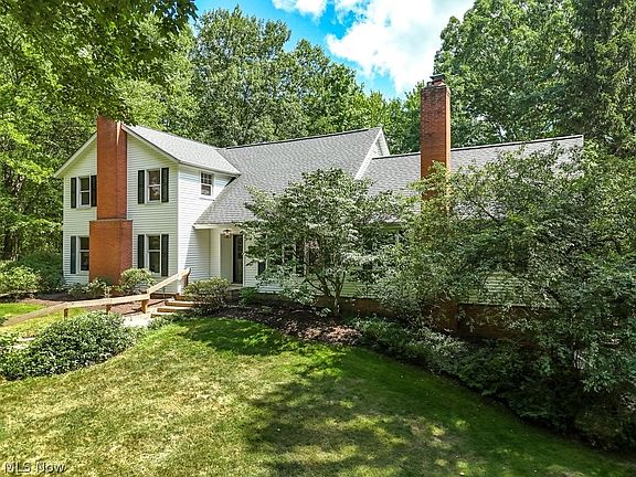 This enchanting 2+ acre property is a dream! Situated down a long private drive on one of the most beloved streets in Chagrin, this charming colonial is surrounded by a thick embrace of mature trees offering ULTIMATE PRIVACY. A hidden sanctuary with plenty of wide open green space, ideal for picnics, yoga, or fun in the sun. Enjoy the reprieve from the hustle & bustle of everyday life AND proximity to everywhere you want to be! Inside, be sure to appreciate all of the solid & sturdy construction of a 1960s home: hardwood floors, charming built ins, oversized rooms, and beautiful light filled spaces. Off the foyer a library and a large, bright living room with fireplace and new (2024) picture window. The dining room is ready to host all your most treasured holiday meals. Keep the cool & retro knotty pine kitchen or reconfigure the large kitchen footprint. Right off the kitchen is a screened in porch, an idyllic spot for spirited summer dinner parties, or simply relaxing with a good book during a spring drizzle. Spill out onto the large deck; perfect additional entertaining space. Back inside the family room with 2nd fireplace is another massive gathering space, equipped with a full bathroom AND closet, easily converted into a 5th bedroom or 1st floor primary suite! Upstairs, 4 bedrooms with hardwood floors and 2 full bathrooms. The 2nd floor primary bedroom has an additional unfinished space that would make an incredible walk in closet with just a little bit of effort and vision! Lower level laundry, plenty of storage and attached 2 car garage. Stunning neutral decor, the entire interior was freshly painted in 2024. Ready for its next owners to simply move in and enjoy or come with plans to turn up the dial to turn this home into a true legacy property for generations to enjoy for years to come. Simply one of the most special locations and less then a mile to your next friendly Chagrin Falls happy hour, retail therapy session or ice cream treat!