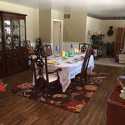 Immediately available!!! Two story, beautifully maintained, lakefront, modified cape cod home with 5 bedrooms (each with a ceiling fan) and 3 baths!!! This home has recently-installed, dark walnut stained hard wood floors which complement the earth-tone painted walls throughout most of the downstairs. Speaking of downstairs, there are two spacious bedrooms (one with a private exterior entrance) and a bath which could be easily converted into an in-law suite or an office. Also downstairs you will find a formal dining room with a carpeted side sitting room, a family room, a kitchen, an additional bathroom and a sunroom. The family room contains a full-wall, brick and knotty pine fireplace with a natural gas insert. Directly inside from the garage, there is a laundry room/mudroom containing the washer, dryer and laundry sink which are included. The kitchen is appointed with all stainless steel appliances including a natural gas convection oven/range and a vented microwave oven. All appliances are included. On the second floor, you will find the remaining three bedrooms (two with walk-in closets), the third bath containing the tub and a huge 384 sq ft multi-purpose room with plenty of storage in the attic and the eaves. As mentioned before, directly off the laundry there is a 2½ car garage with additional ceiling-level storage and cabinet storage along one wall. The additional pantries and the freezer will be included. Once you exit the sunroom, you will find an amazing, recently installed 1700 sq ft patio which includes a lower-level barbeque area with a natural gas hook-up. The Weber Summit 6-burner, natural-gas grill is included. Down at the lake, you can relax on the maintenance-free, composite deck. Take your canoe on the lake and return to your own private mini-beach. For your comfort, the home is heated and cooled with a 4-zone geothermal system.