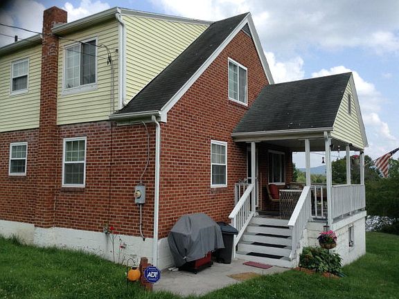 Four bedroom home, hardwood floors through out, eat-in kitchen plus formal dining, 2 covered porches with beautiful view of the mountains, large yard for play and garden space. Both upstairs bedrooms have offsets (bedroom 3: 7.10 x 6.8; bedroom 4: 8.7 x 6). New compressor in heat pump, most plumbing pipes have been replaced, basement treated with drylok, roofing has been inspected & repaired.