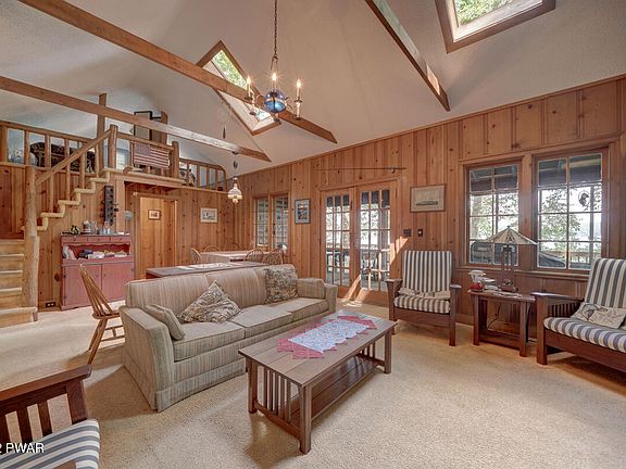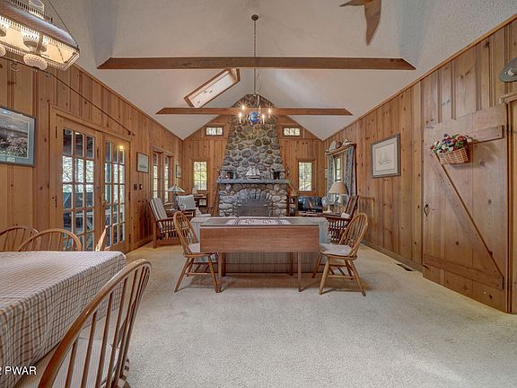 Lake Wallenpaupack Lakefront Cabin - on the sunset side of the lake! Home offers 2 bedrooms plus sleeping loft, updated kitchen, spacious living room w/ stone fireplace and soaring ceilings, two main level bedrooms and 1.5 baths. Ideally located 10 minutes to I-84 and ten minutes to town. Lakeside screened porch plus lakeside deck. Steps to the water's edge and dock on Wallenpaupack., Beds Description: 2+Bed1st, Baths: 1 Bath Level 1, Baths: 1/2 Bath Lev 1