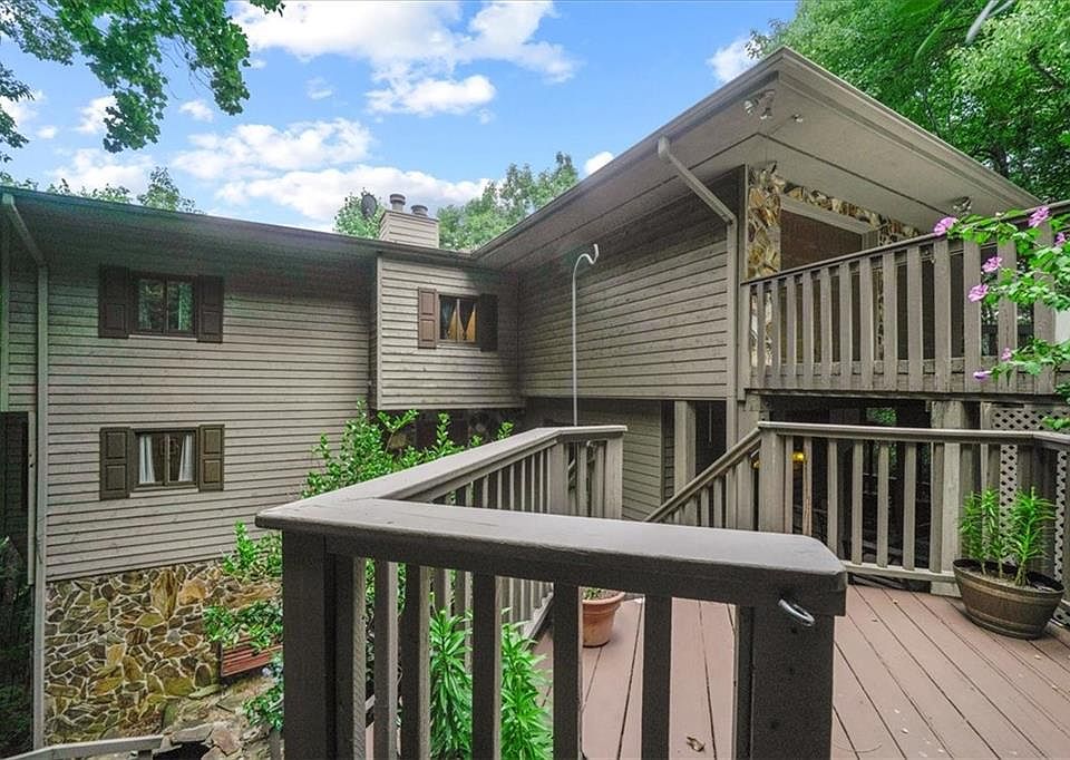 MOTIVATED seller & PRICED TO SELL. Home needs a few updates and your TLC. BEING SOLD AS IS. Purchase will include a one-year home warranty & termite bond. You will fall in love with this COMPLETELY UNIQUE, stunning four level 5 bed, 4.5 bath home that is North Georgia living at its best. Drive into the two-car garage to enter the top floor. This level features a bright and airy kitchen with white cabinetry, black appliances, adjoining wet bar for a coffee station or entertainment refreshment area, dining area with stone fireplace and peek opening to the living room below, a glass enclosed patio/sunroom overlooking the backyard, and the laundry room. Additionally, the upper floor owner’s suite allows you to awaken to a spectacular view of the outdoors…say hello to the tree tops every morning from the Romeo & Juliet deck! The bedroom also has a peek opening with a view of the main living area below. The ensuite master bath offers a corner vanity room, cultured marble shower and separate tub room, a corner WC with sink, and walk-in closet. Back outside and on your way to the front door, a soothing waterfall welcomes you on your descent from the driveway. Before entering the front door, a cozy covered speakeasy area greets you. This outdoor area has a separate door for entry into the home via the library, and is protected so in any weather you can sit, relax, watch TV, read a book, or enjoy coffee in the morning or a glass of wine in the evening. Once entering the front door, you find a nice-sized foyer where you can go upstairs or continue to a beautiful living area with incredible high ceilings, fireplace, and a wall of windows with breathtaking views. Adjacent to the living area is an office and the library. The foyer also offers access to two bedrooms with a Jack and Jill bath, as well as a tubbed bath for guest use. The next level down is genuinely a wide-open flex floor. It provides a bedroom, storage closet, full bath, wood-burning stove, living area, and access to a Romeo & Juliet deck with further spectacular outdoor views. The ground level delivers even more storage, a workshop, a half-bath, and access to the full deck. And, when you want to enjoy a stroll to take in the vast beauty of this home, an exterior staircase allows use of a second driveway, with stairs leading to the front door. You truly must see this home to fully appreciate its uniqueness. Amenities include swim, pickleball, stables, and more. https://youtu.be/5I47sxRnjYg