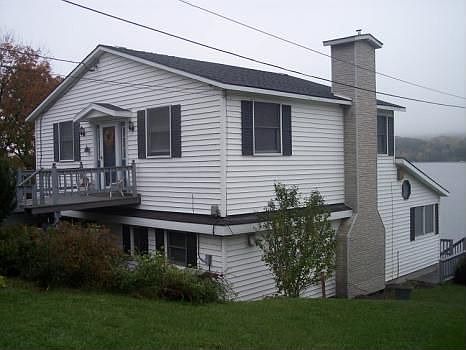 VIEWS, VIEWS, VIEWS! Well maintained year round home on beautiful Canadrago Lake with 50ft of prime lakefront. Featuring 2100sq ft of living space with 4 bedrooms, cathedral ceilings and a spa room with hot tub. A detached garage provides 1100 sq ft of space (on two levels) to accommodate 3 cars plus a workshop or other expansion plans. Enjoy unparalleled sunrises from the three-tiered deck that leads to over 50ft of dock.